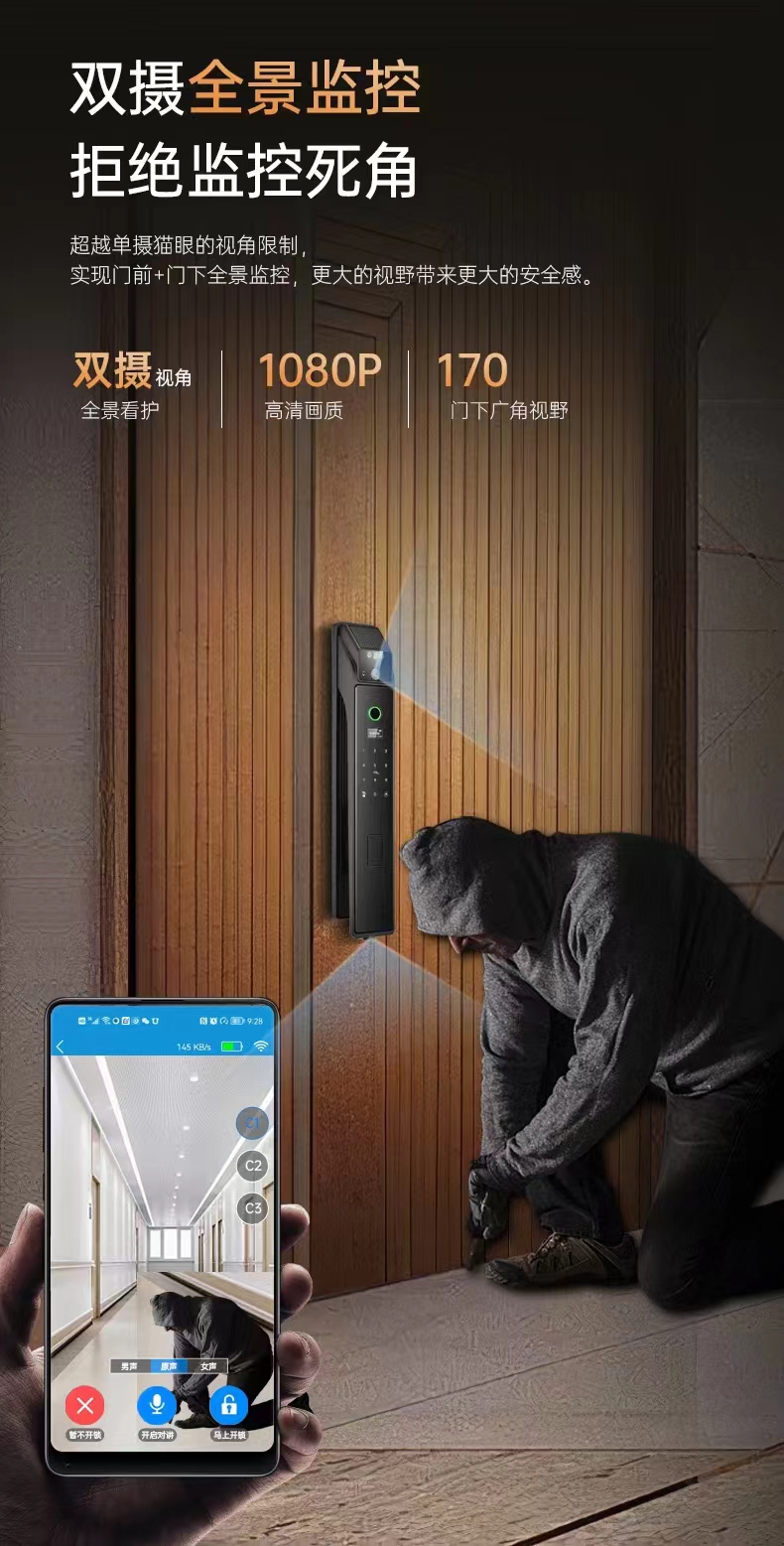 执手款智能锁:人脸识别、指纹、密码、远程控制,可视门铃 ┈┈┈...